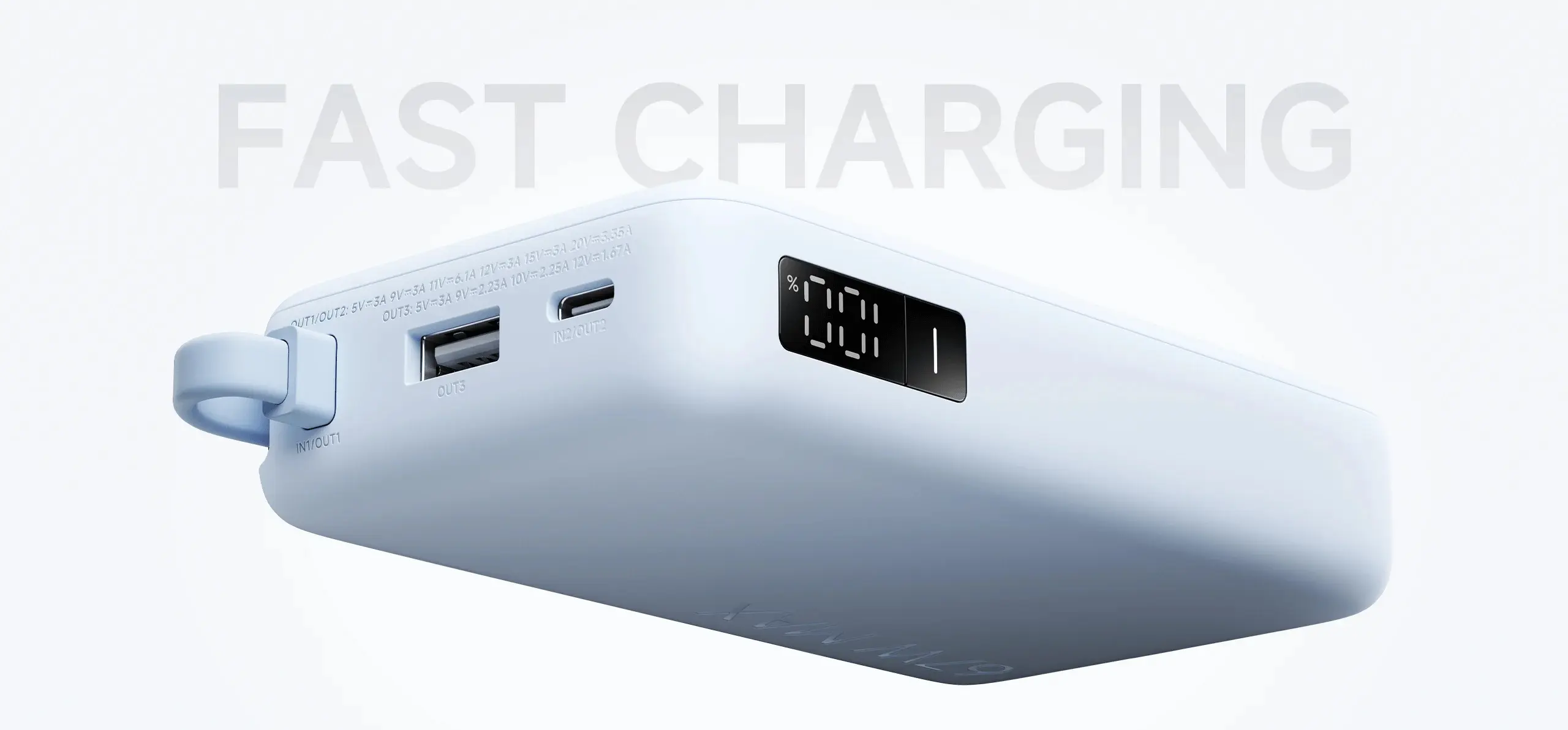 Power Bank Xiaomi PB1067 поддерживает до 67 Вт выходной мощности при зарядке через встроенный кабель USB-C, что позволяет значительно ускорить зарядку совместимых устройств. Эта возможность особенно полезна, если вам нужно быстро подзарядить смартфон или даже ноутбук.