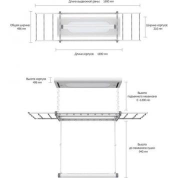 Конструкция устройства выполнена из качественных материалов, в числе которых износостойкая и не подвергающаяся коррозии сталь 304. Максимально- допустимый вес достигает 30 килограмм. Такая нагрузка может продержаться длительное время без последствий в виде деформации. Всего можно одновременно сушить 30 элементов зимней и 50 элементов летней одежды.